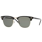 Ray-Ban RB 3016 901/58 CLUBMASTER Black Sunglasses With Crystal Green POLARIZED Lenses- 49mm (Apparel)
