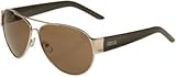 Kenneth Cole Reaction sunglasses have a wire frame design; a bar lies over the bridge. These stylish sunglasses have wide polished arms with a logo-stamped exterior. Cushioned nose pads give the bridge added comfort.